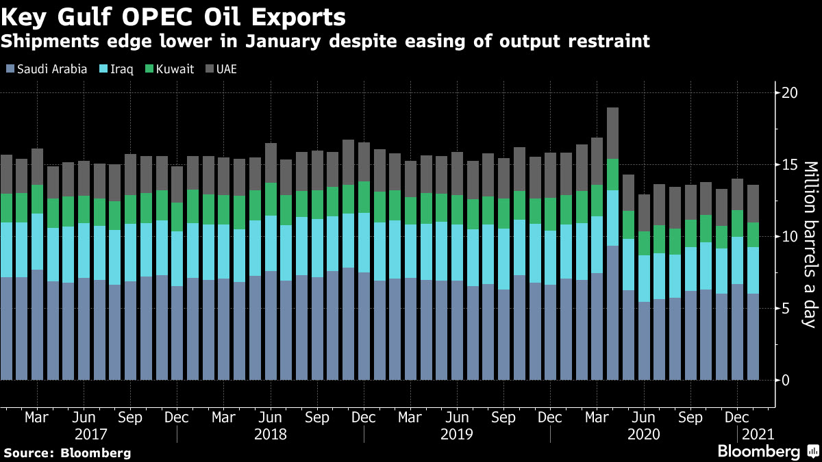 على الرغم من أنه من المقرر أن تنعش “أوبك+” ما مجموعه مليوني برميل في اليوم هذا العام إلا أنها وافقت على وقف لمدة شهرين بعد الدفعة الأولى البالغة 500 ألف برميل في يناير حيث هددت الإصابات الجديدة بالفيروس الطلب على الوقود.