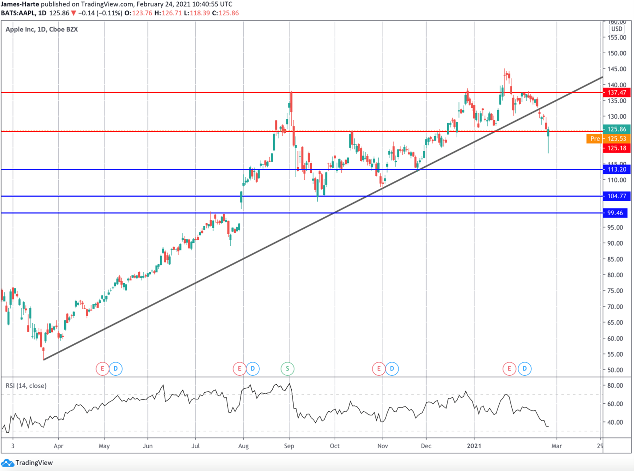 وكان ارتفاع توقعات التضخم في الولايات المتحدة يضرب أسهم شركات التكنولوجيا بقوة خاصة بالنظر إلى الارتفاعات القياسية التي شوهدت خلال عام ٢٠٢٠. ولكن أسهم آبل انتعشت بقوة خلال الجلسة حيث قلل “باول” من احتمال قيام بنك الاحتياطي الفيدرالي بإلغاء التيسير النقدي استجابةً لارتفاع العوائد وتوقعات التضخم.