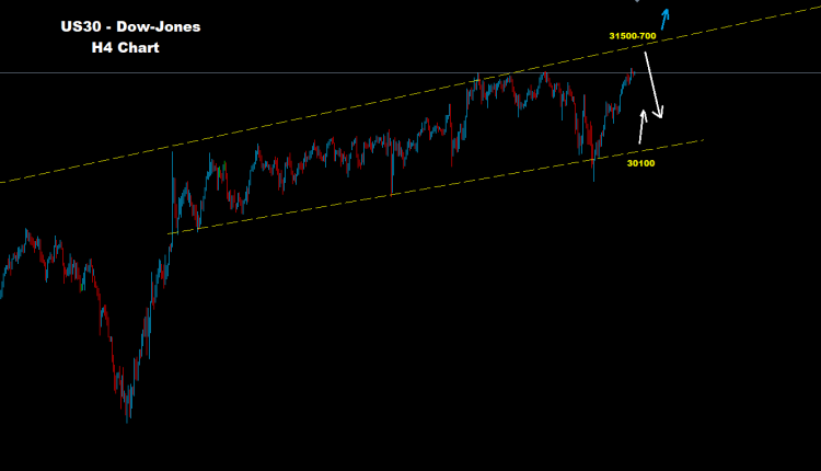 كما نرى على الرسم البياني فإن السوق يواجه مستويات مقاومة جديدة ضمن مناطق 700-31500 والتي قد تدفع بتراجع تصحيحي نحو مناطق 200-30100