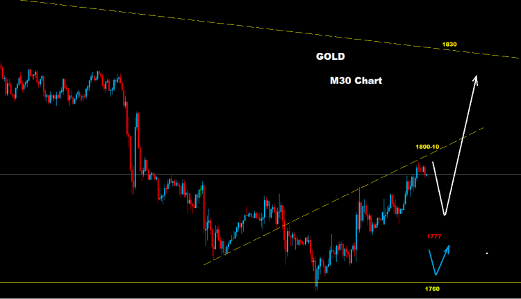 نجح المعدن الثمين بإعادة اختبار حواجز الدعم 65-1760 في حين تمكن مرة أخرى من التوجه لارتفاع تصحيحي نحو مناطق 1800