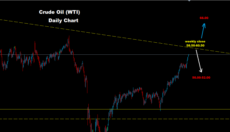 في حين وإن أي إغلاق أسبوعي فوق مناطق 60.50 قد يدفع بموجة صعود لأسعار 66.00