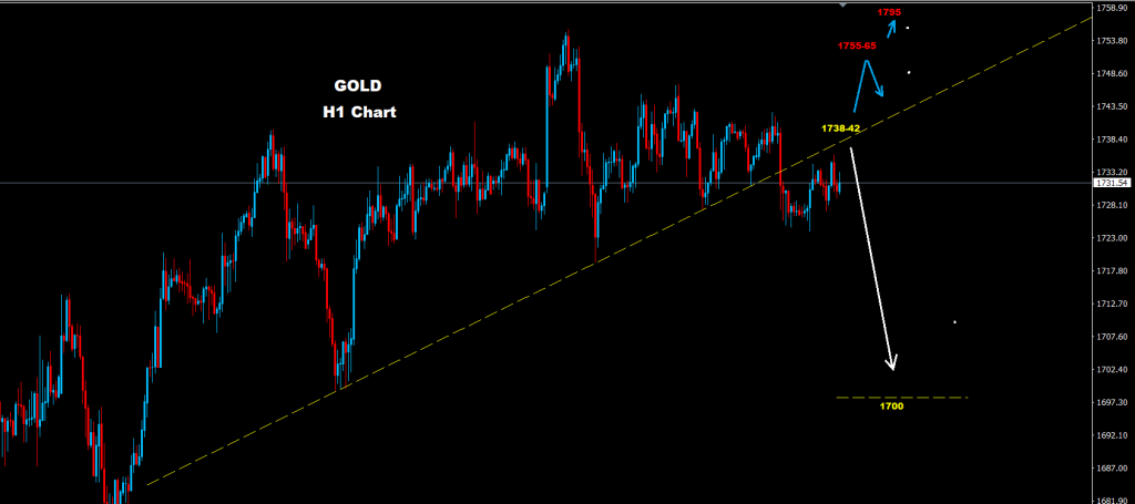 فشل المعدن الثمين باختراق مستويات المقاومة 42-1738 بالرغم من ضرب أسعار لمستويات 1745 الأسبوع الماضي