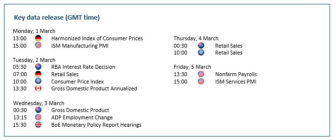 كانت التوقعات المتفائلة في منطقة اليورو المدعومة بتحسن معنويات الصناعة والمستهلكين سبباً في الارتفاع الأخير لليورو. وقد تساعد بيانات التضخم القادمة اليورو على تعزيز مكاسبه إذا ما أظهرت ارتفاعاً.