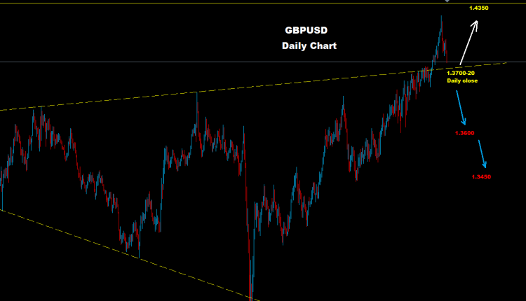 أي إغلاق يومي تحت مناطق 1.3700 سيعيد ضغوط الموجه الهابطة نحو مناطق 1.3600 و 1.3450