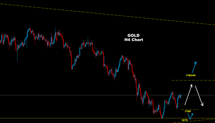 كما نرى على الرسم البياني فإن الذهب يواجه مستويات دعم حول مناطق 1700 و1675 في حين تتواجد مستويات المقاومة على مناطق 1740 و 65-1760
