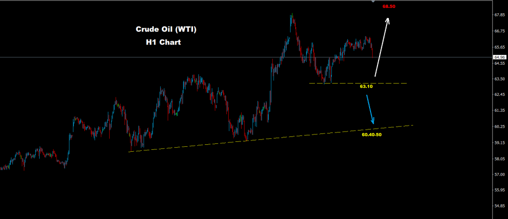 كما نرى على الرسم البياني للمدى اليومي، فإن النفط يواجه مستويات دعم حول مناطق 63.10 حيث بقاء السوق فوق هذه المستويات سيدعم مزيد من الارتفاع نحو مناطق 67.50 و 68.50