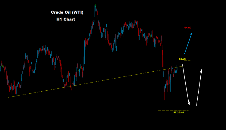 يظهر المدى اليومي للنفط الخام مستويات مقاومة محتمله حول مناطق 62.25 و التي لا تزال تبقي فرص التراجع و الهبوط قائمة بالسوق نحو مستويات 40-57.25