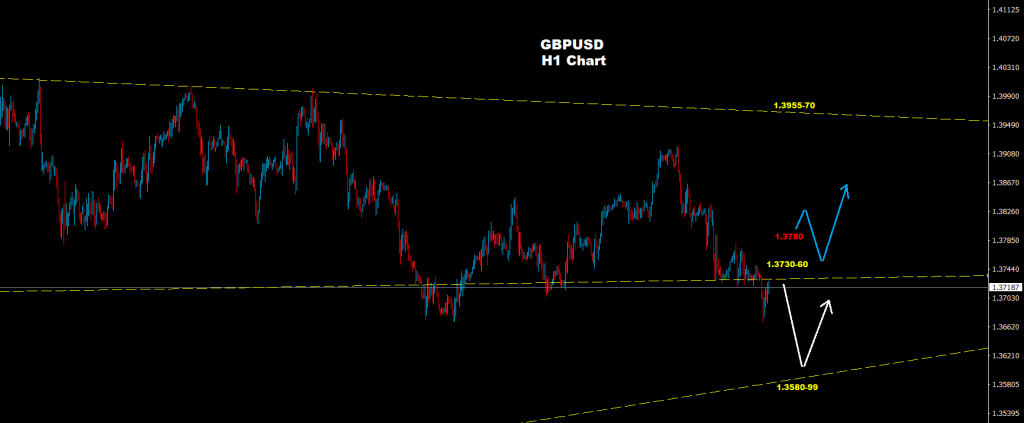 كما نرى على الرسم البياني، فإن السوق يواجه مستويات مقاومة لمناطق 60-1.3730 حيث وطالما السوق متماسك تحت هذه المستويات فإن مزيد من التراجع والهبوط قد يطرأ نحو مستويات 99-1.3580