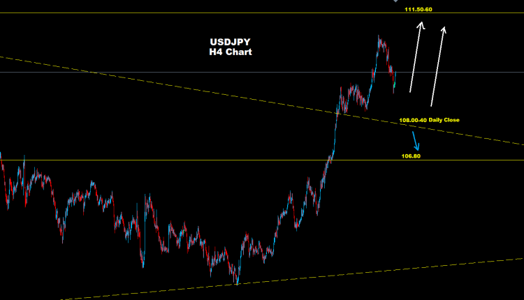 أي إغلاق يومي تحت مستويات 108.00 قد يدفع بمزيد من التراجع والهبوط مع أهداف أولية لمناطق 106.80
