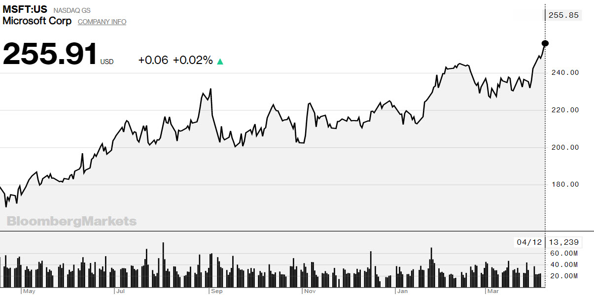 عززت تلك التحركات من قبل ” مايكروسوفت” المكاسب القياسية بمؤشر “ستاندرد آند بورز 500” مع ارتفاع أكثر هذا الشهر مما يقارب ارتفاع هذا العام بنسبة 10٪، واستمر سهم شركة “مايكروسوفت” بالصعود للقمة بينما ارتفع بشكل طفيف يوم أمس الإثنين.