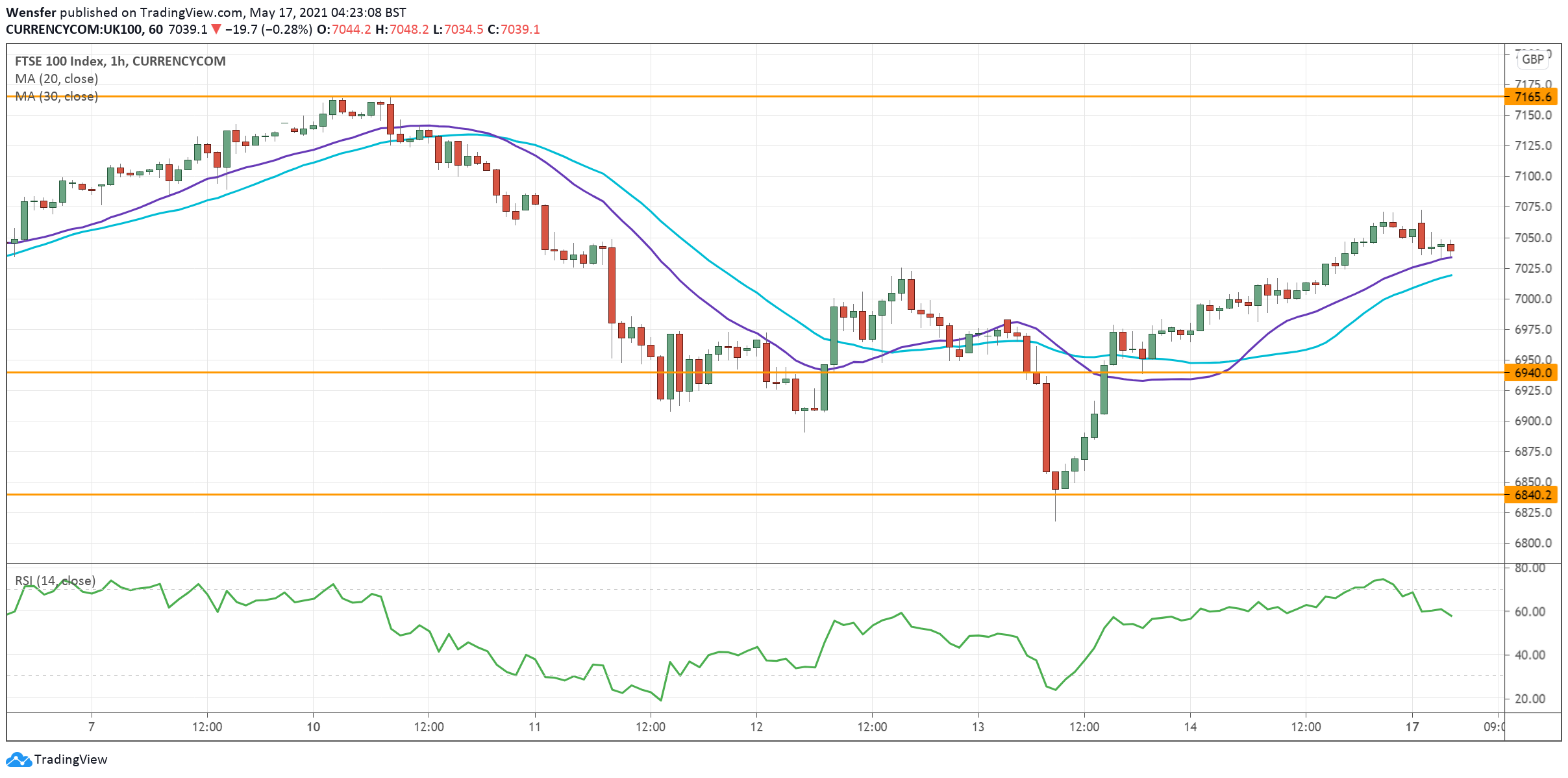 ارتد مؤشر “فوتسي ١٠٠” مرة أخرى مع تراجع مخاوف التضخم. وقد شهد المؤشر اهتماماً قوياً بالشراء عند مستوى ٦٨٤٠، وهي منطقة طلب على الرسم البياني اليومي. ويعد الارتفاع أعلى ٦٩٨٠، وهو مصدر عمليات البيع الأخيرة ثم المستوى النفسي ٧٠٠، مؤشراً على أن المشترين لديهم اقتناع قوي بالتراجع. وقد بدى التراجع القوي فرصة للشراء على انخفاض من جديد. ومن شأن الإغلاق أعلى ٧٠٤٥ إلى دفع المزيد من المشترين للانضمام وإرسال السعر نحو القمة المتواجدة عند المستوى ٧١٦٥. وعلى الجانب السلبي، يمثل السعر ٦٩٤٠ مستوى الدعم المباشر.