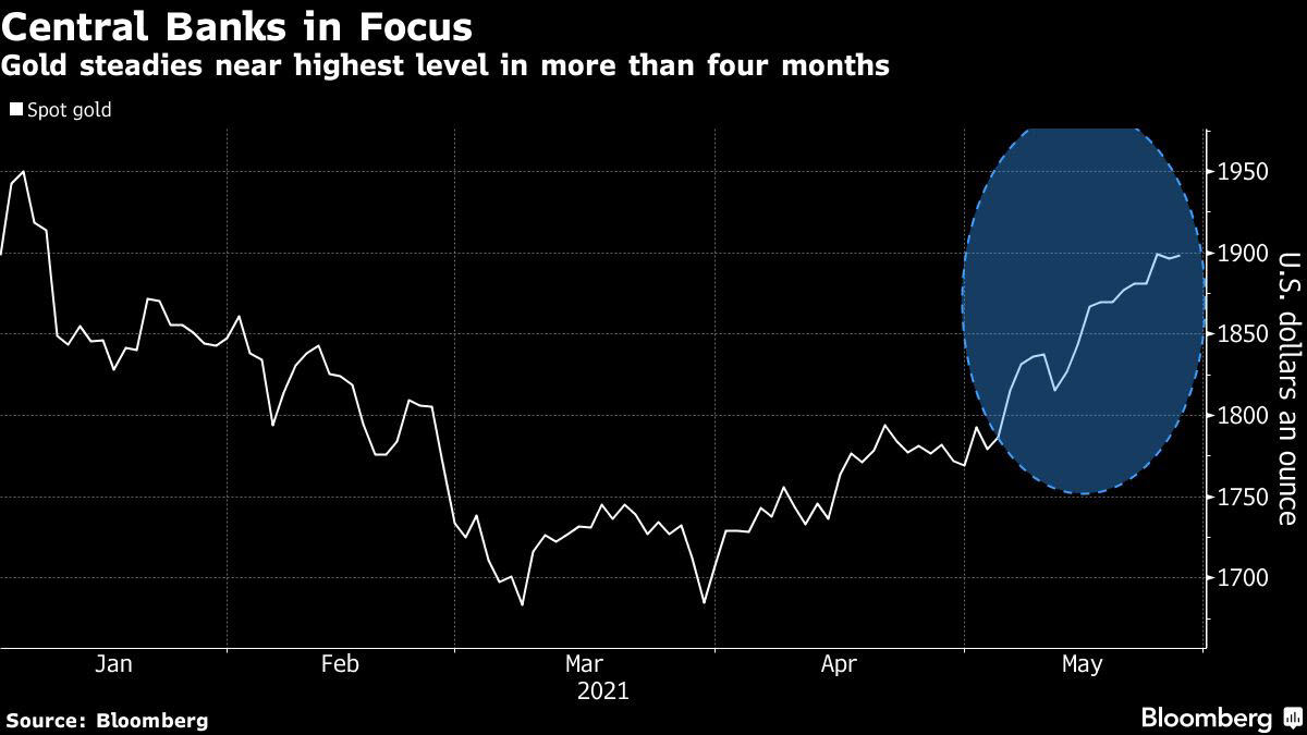 فمع التطمينات من البنوك المركزية حتى لو كان التضخم أعلى من المتوقع فإن محافظي البنوك المركزية ما زالوا متشائمين، وبذلك قد يواصلون إبقاء أسعار الفائدة منخفضة مما سيكون إيجابي للذهب.