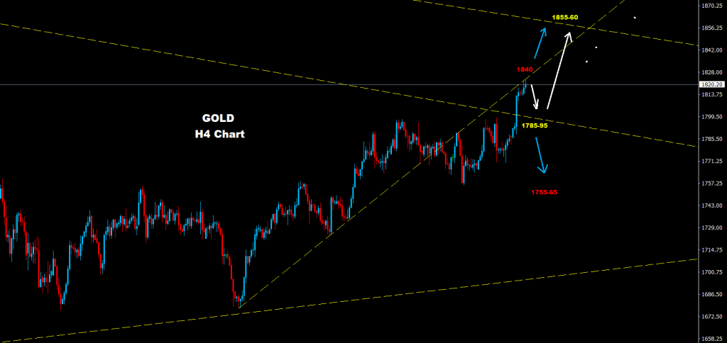 كما نرى على الرسم البياني فإن السوق لا يزال يمتلك مساحة لمزيد من الارتفاع مع حواجز مقاومة على أسعار 1825 و 1840