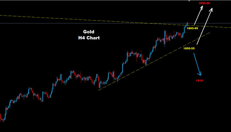 نجح المعدن الثمين باختراق حواجز مقاومة 05-1900 حيث أشرنا له يوم أمس إنه وفوق هذه المستويات فإن موجة صعود جديدة قد تسيطر على السوق.