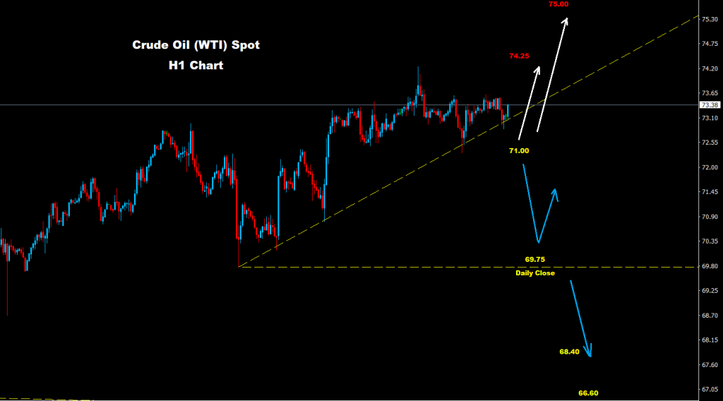 تمكن النفط الخام من الاحتفاظ بالتداولات فوق مستوى الدعم 71.00، حيث تمكن من إضافة المزيد من التقدم فوق مستويات 73.00 كما نصحنا في وقت مبكر من هذا الأسبوع.
