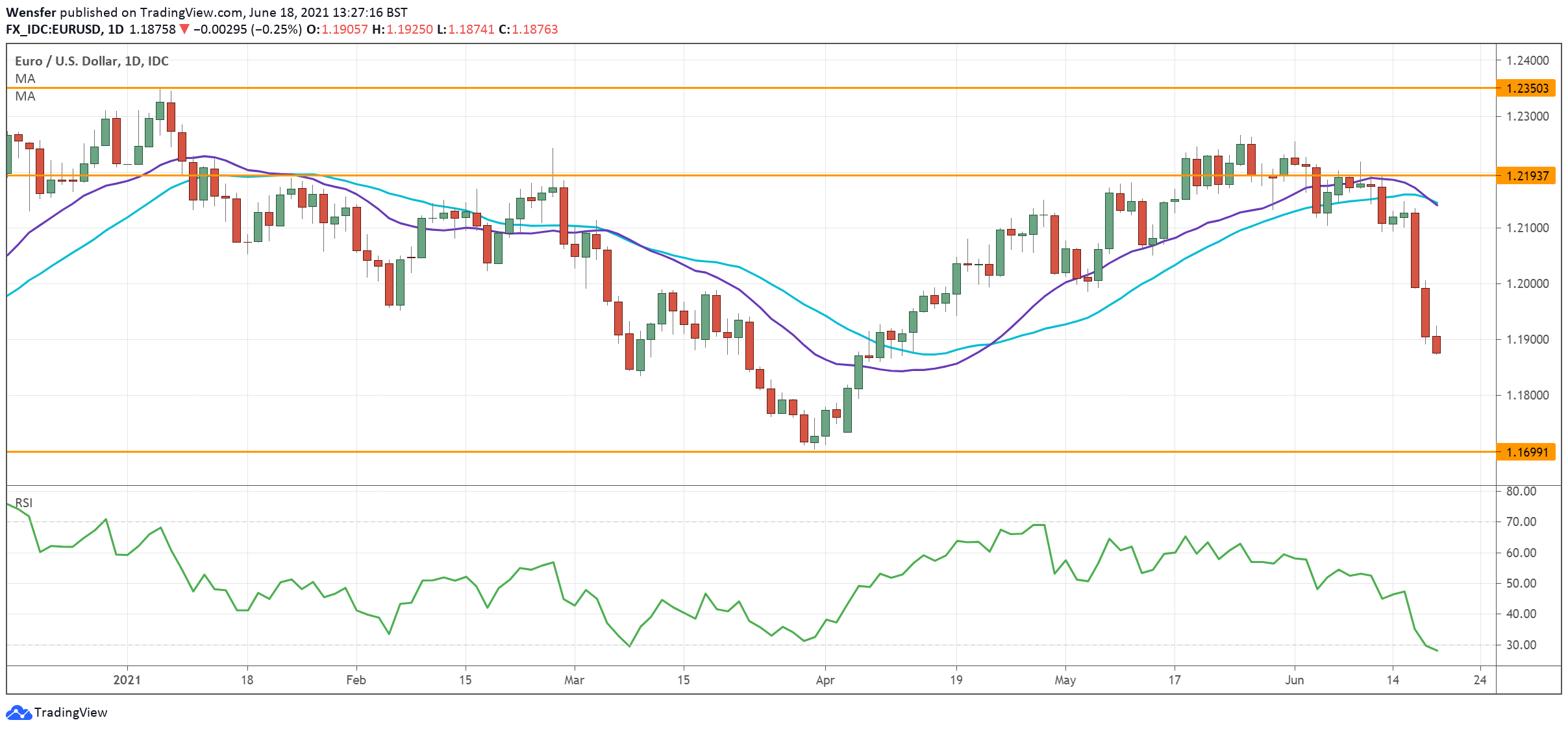 ويتراجع اليورو نحو أدنى مستوى له في أبريل عند ١.١٧٠٠. وقد يؤدي اختراق هذا المستوى إلى انعكاس سلبي.