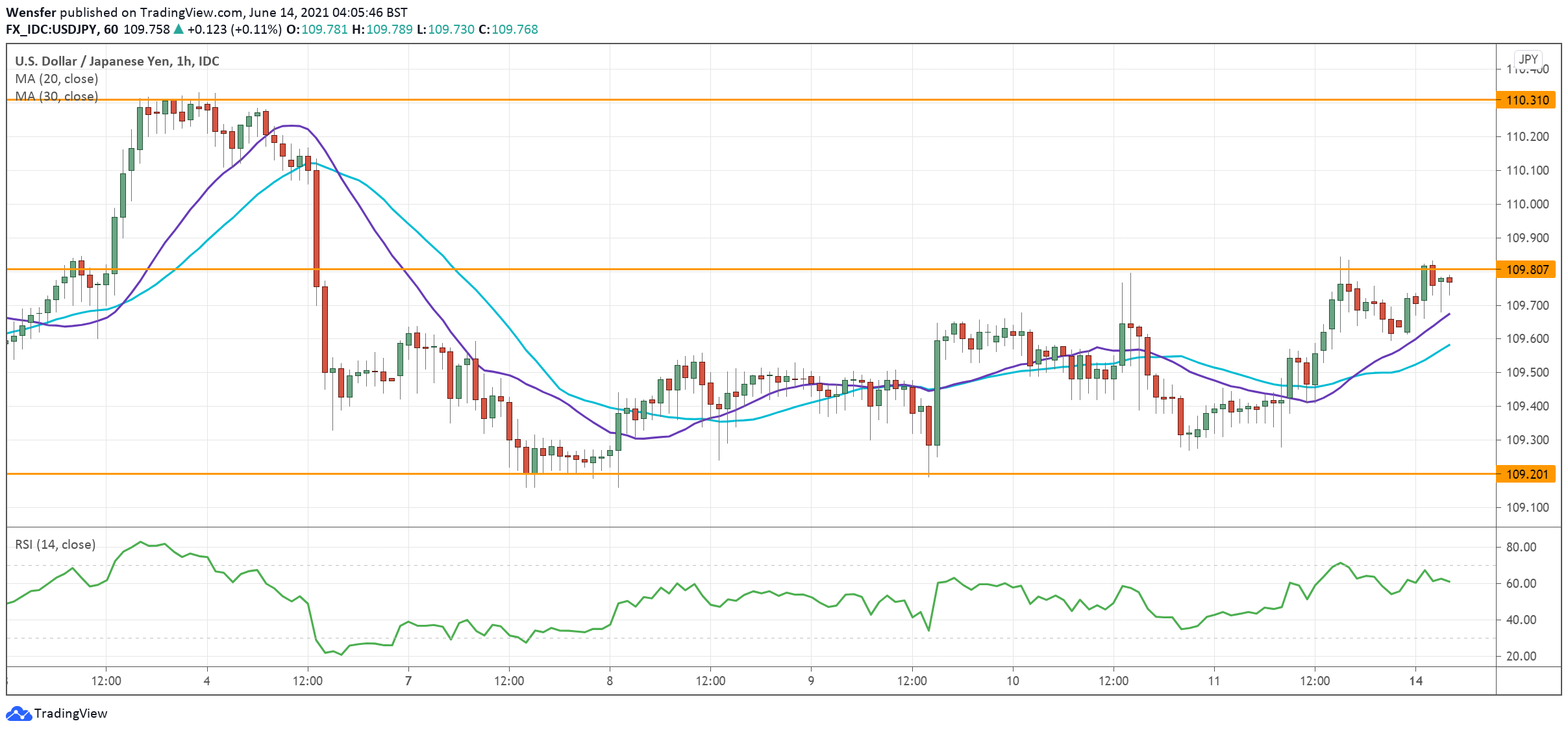 وسيكون المستوى ١١٠.٣٠ هو العقبة التالية في حال ما انعطفت حركة السعر. وقد يؤدي الانخفاض دون ١٠٩.٢٠ إلى جولة أخرى من عمليات البيع صوب المستوى ١٠٨.٦٠، وهو مستوى دعم رئيسي على الرسم البياني اليومي.