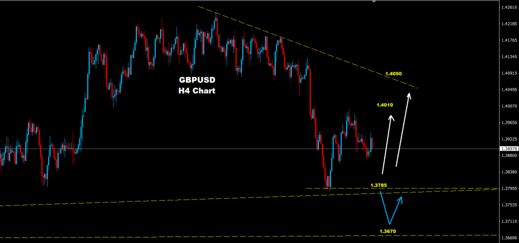 تحت 1.3785 فإن مزيداً من الهبوط سيكون متوقعاً مع دعم آخر حول 1.3670 والذي قد يعيد فرص للموجة التقدمية مرة أخرى نحو منطقة 1.4010