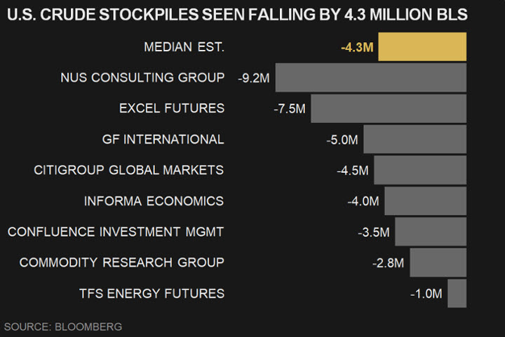إذا ما ثبتت تلك التوقعات، سيكون هذا أكبر انخفاض متتالي في المخزون منذ يناير، وإذا ما أكدتها بيانات الحكومة الأمريكية سيكون هذا الأسبوع السادس على التوالي لتراجعات المخزون.