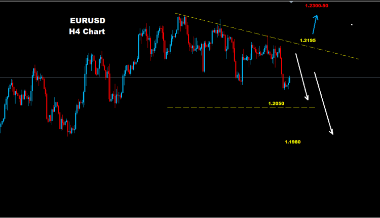 كما نرى على الرسم البياني فإن اليورو يواجه مستويات مقاومة للمدى اليومي حول مناطق 1.2195 والتي طالما السوق يحافظ على تداولاته تحتها فإن مزيد من التراجع والهبوط سيبقى قائماً بالسوق نحو مستويات 1.2050 و90-1.1980