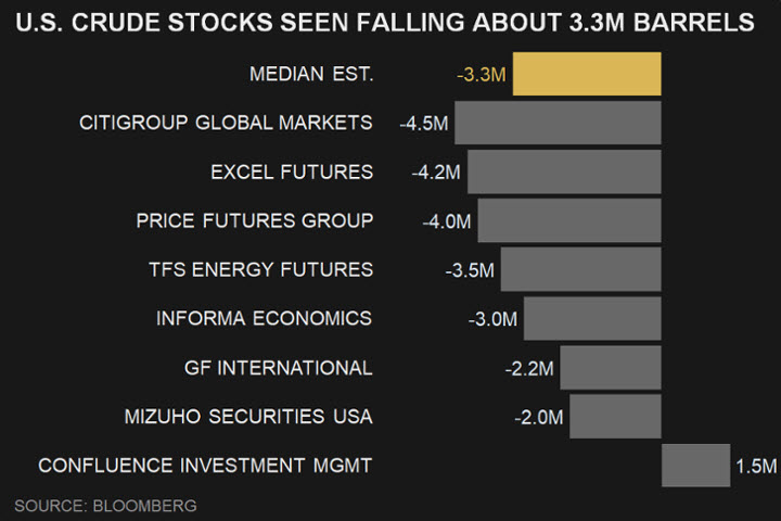 على صعيد آخر، من المرتقب أن تُظهر بيانات مخزون النفط الخام الأمريكي تراجعاً بنحو 3.3 مليون برميل الأسبوع الماضي. وإذا تم تأكيد هذا يوم غد الأربعاء من قبل وكالة الطاقة الأمريكية، فسيكون هذا انخفاضاً للأسبوع الثالث.