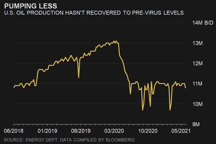عمليات التنقيب والإنتاج في الولايات المتحدة دون مستوياتها قبل جائحة كورونا، مما يعطى الأفضلية لسيطرة أوبك+