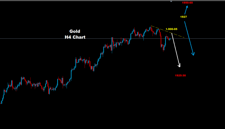 فوق مستويات 1905 فإن الذهب سيواجه مستويات مقاومة على مناطق 1917 و1927 والتي قد تدفع إحداهما بحركة تصحيحية جديدة هابطة على السوق نحو مناطق 1870