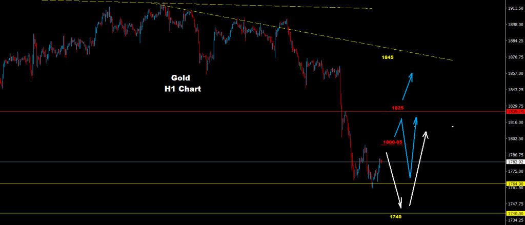 تمكن الذهب من التراجع من مستويات المقاومة 05-1800 الأسبوع الماضي حيث تمكن من الوصول إلى أدنى مستوى عند 1760