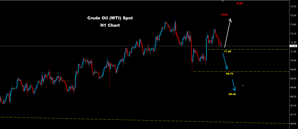 وتحت 71.00 قد يتجه السوق لمزيداً من الانخفاض للتوجه نحو مستويات 69.75 و 68.40