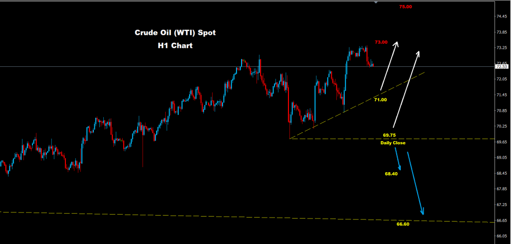 لا يزال النفط الخام يمسك بموجة اتجاه صعودية قوية حيث يواجه السوق الدعم الأول حول منطقة 71.00