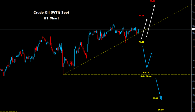 تمكن النفط الخام من الاحتفاظ بالتداولات فوق مستوى الدعم 71.00، حيث تمكن من إضافة المزيد من التقدم فوق مستويات 73.00 كما نصحنا في وقت مبكر من هذا الأسبوع.