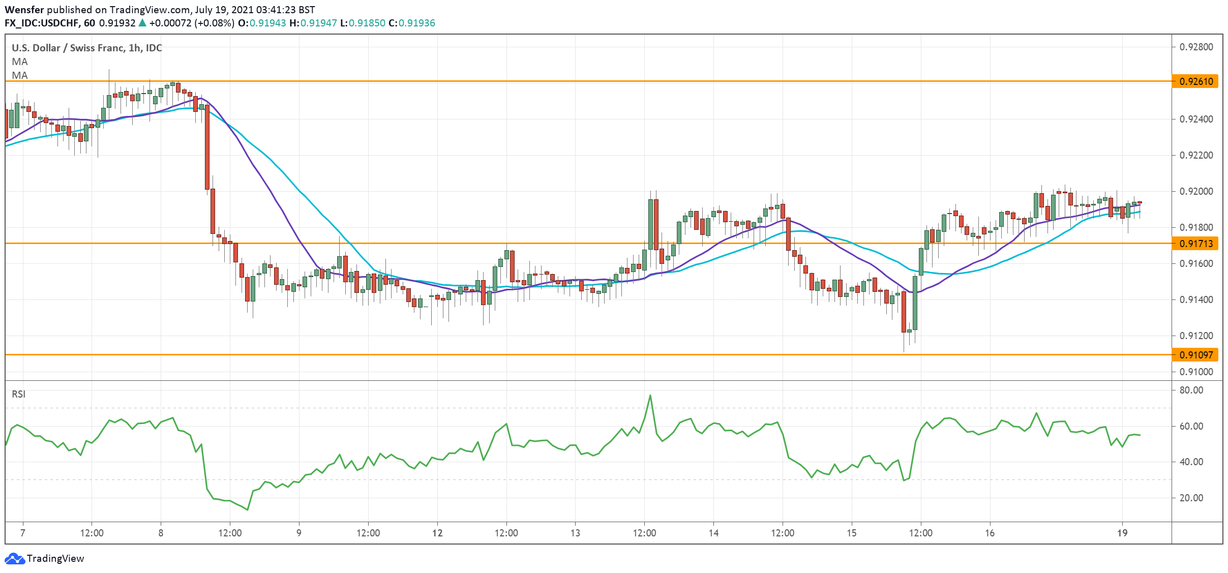 استرد الدولار الأمريكي خسائره بسبب مبيعات التجزئة لشهر يونيو والتي فاقت إجماع التوقعات. ووجد الزوج دعماً على المتوسط المتحرك لمدة ٣٠ يوماً عند المستوى ٠.٩١٢٠.