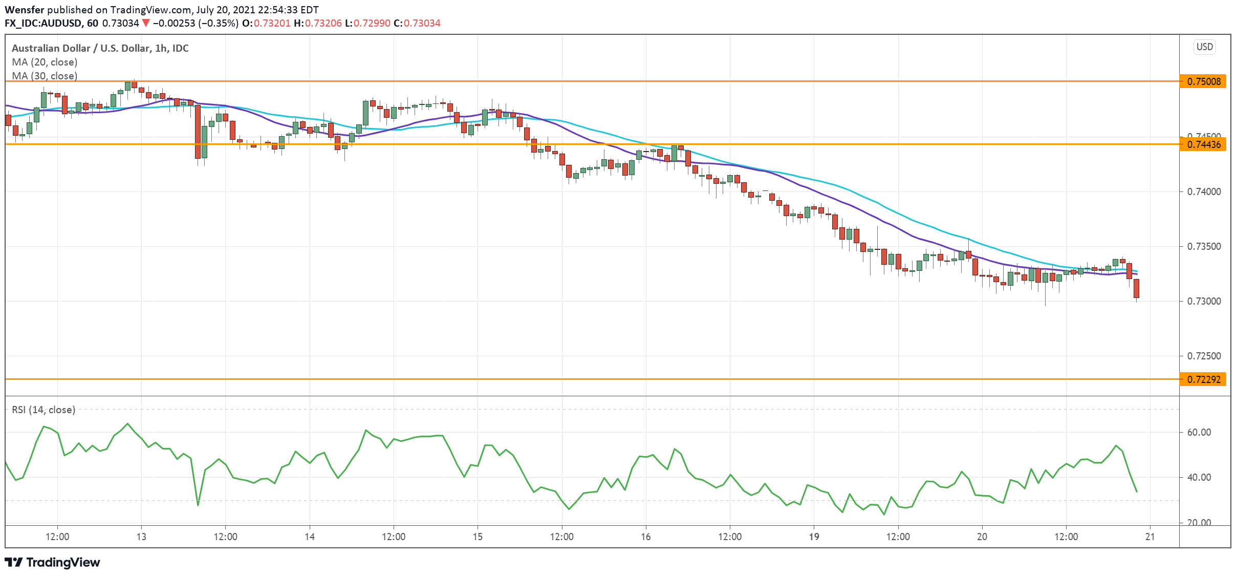 هبوط الدولار الأسترالي مقابل نظيره الأمريكي على طول المتوسط المتحرك