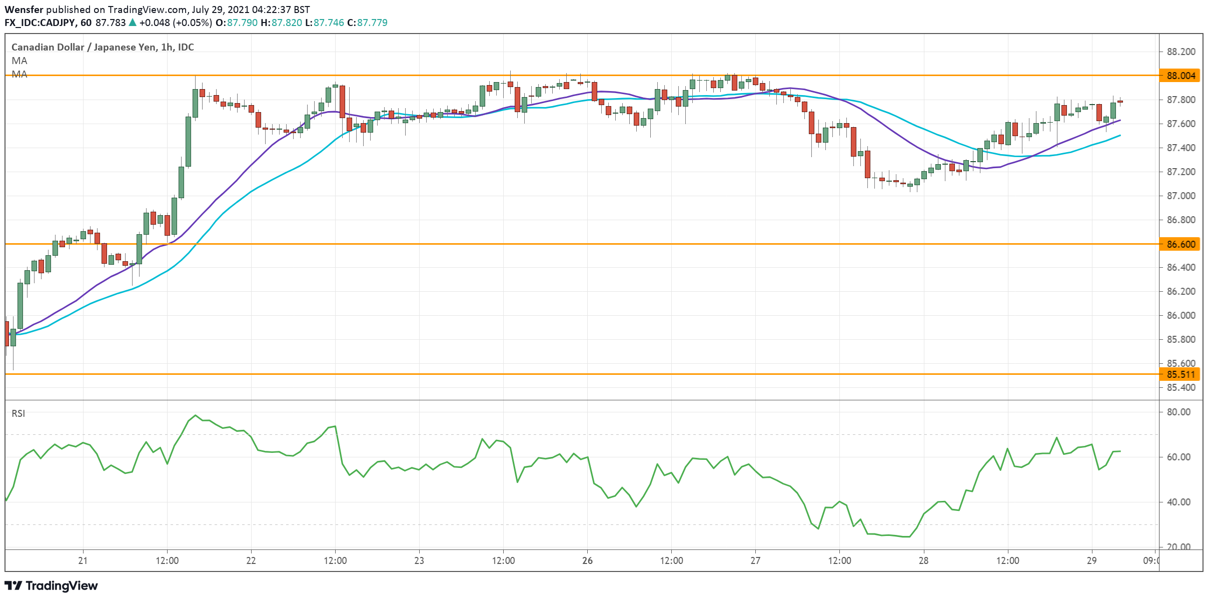 بيد أن وجود مؤشر القوة النسبية في منطقة ذروة البيع من شأنه أن يساعد في جذب المزيد من الراغبين بالشراء. وسيكون المستوى ٨٦.٦٠ هو مستوى الدعم المباشر إذا استمر التوطيد.