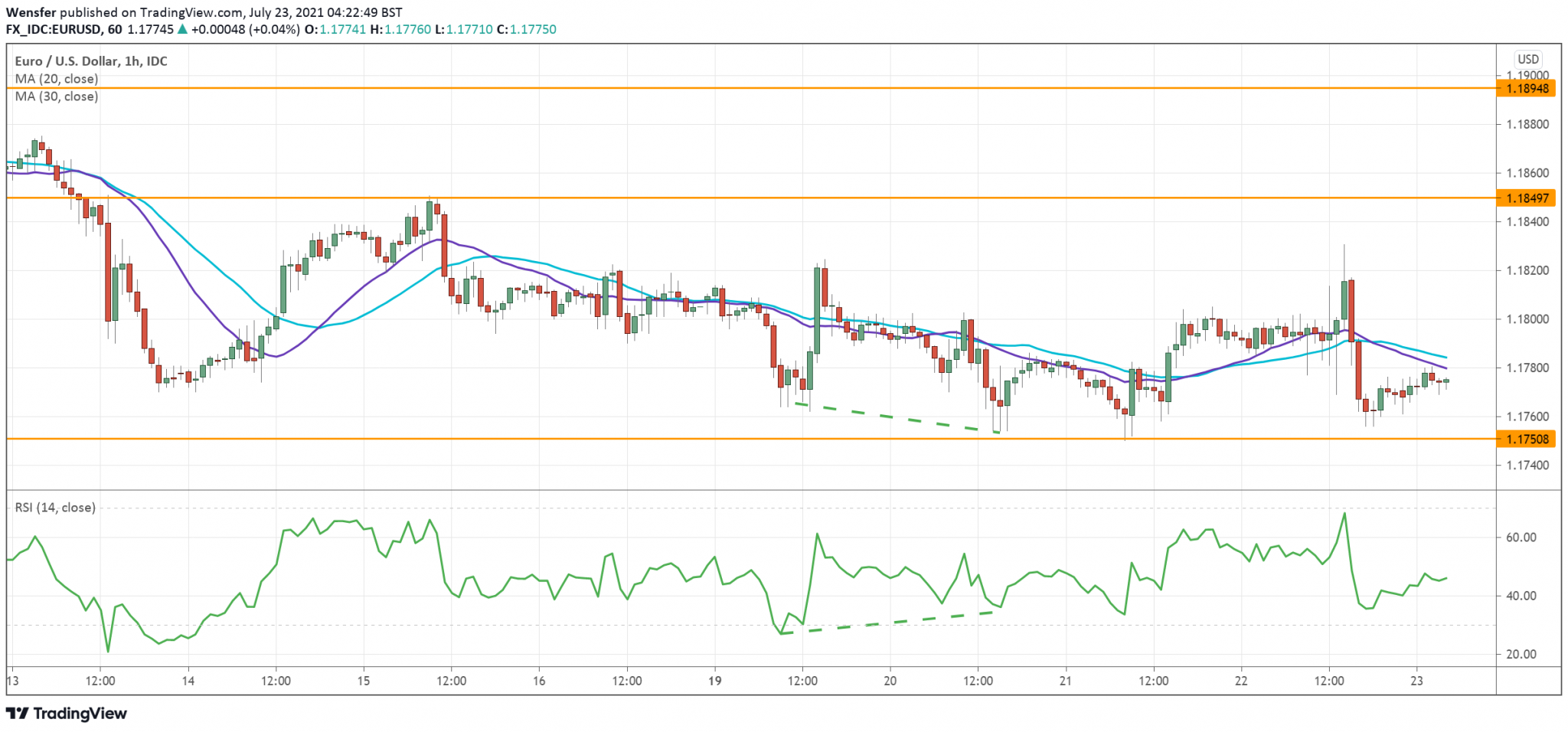 أما على الجانب الهابط، فقد يؤدي الانخفاض إلى ما دون المستوى ١.١٧٥٠ إلى الهبوط نحو المستوى ١.١٧١٠.