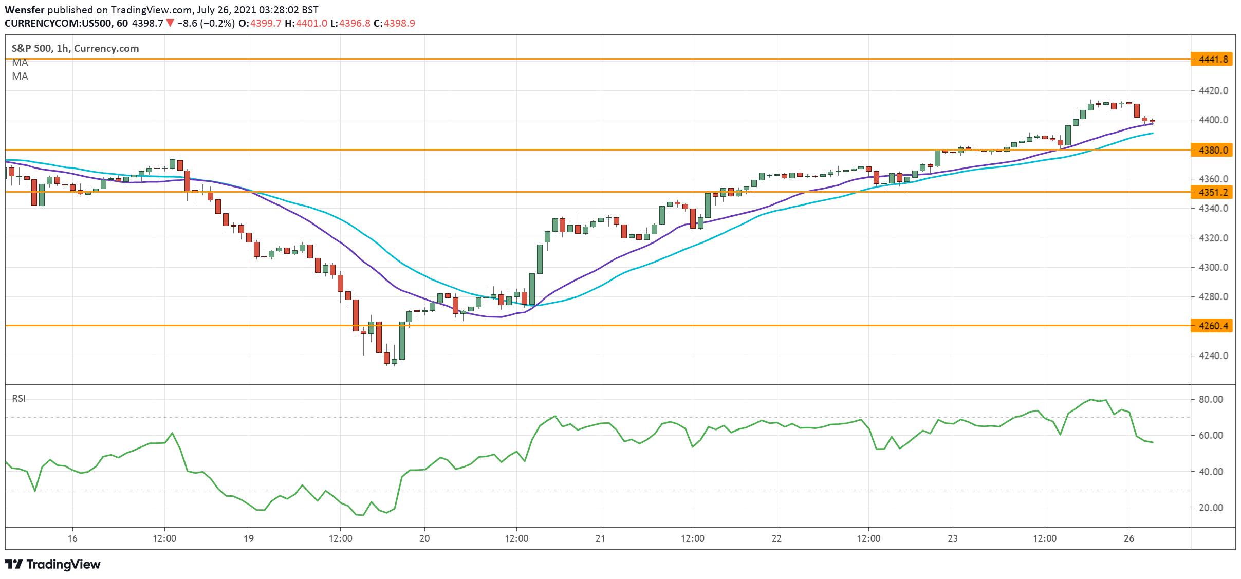 وقد لاقى المؤشر طلبات شراء قوية قرب المستوى ٤٢٥٠، وهو النطاق الأعلى من حركة التوطيد في أواخر يونيو. ولم يترك الارتفاع اللاحق مجالاً للبائعين للحصول على موطئ قدم.