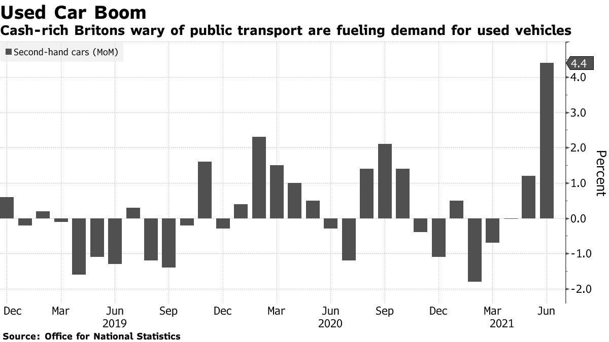 تظهر الأرقام أن بريطانيا تتبع اتجاهين عالميين مع انتعاش تقوده السيارات من عمليات الإغلاق وتأخير الإنتاج للمركبات الجديدة مما أدى إلى ارتفاع الأسعار.