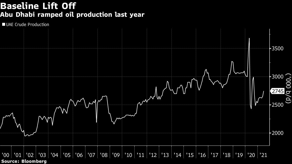 قالت الإمارات العربية المتحدة إنها لن تقبل خطة أعضاء آخرين في “أوبك+” لتمديد اتفاق المجموعة للحد من إنتاج النفط إلى ما بعد أبريل 2022 ما لم يُسمح لها بأن يكون لها خط أساس أعلى للتخفيضات الخاصة بها.