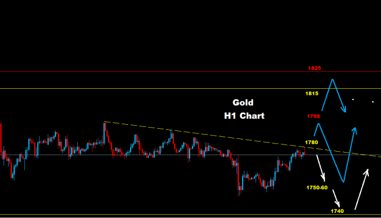 تجت مستويات 1750 يوجد دعم آخر عند 1740 و1720 والذي بدوره قد يدفع باتجاه التصحيح الارتدادي نحو 80-1770