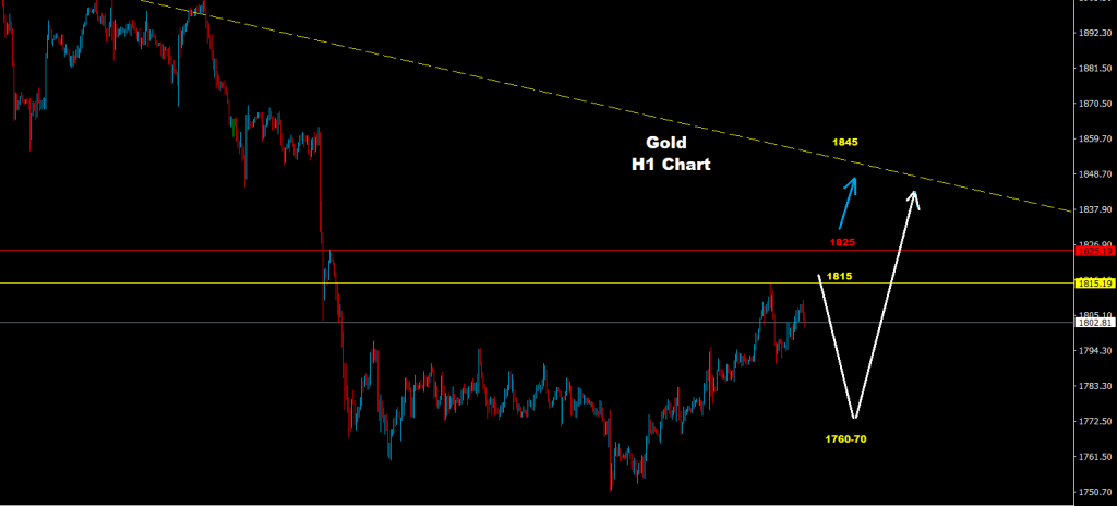 كما نرى على الرسم البياني، فإن فرصة تصحيح هبوط آخر نحو 70-1760 لا تزال متاحة قبل أن تعود الموجة الصاعدة على السوق نحو 1845 وما فوق.