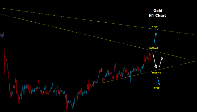 تمكن الذهب من ضرب أسعار فوق مستويات 1825 مما قد يؤدي إلى تقدم أبعد لاختبار المقاومة 1845