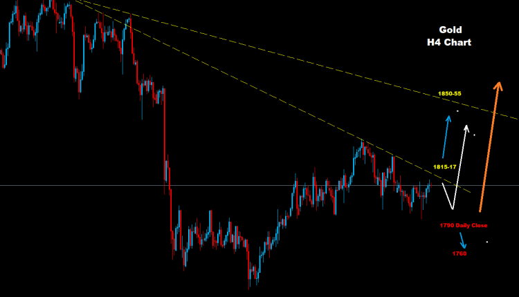 تمكن الذهب من بناء قاعدة حول منطقة 1790 حيث طالما استمر الإغلاق اليومي فوق هذه المنطقة، فقد تضرب موجة ارتفاع أخرى السوق نحو 1850 و 1890
