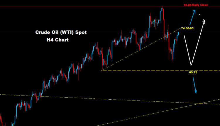 قد يحتفظ السوق بمنطقة التداول هذه بين دعم المدى القصير 69.75 والمقاومة 76.85