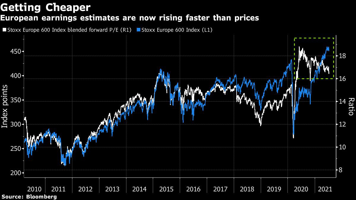 تقديرات الأرباح الأوروبية ترتفع الآن أسرع من سعر الأسهم وفقاً لمؤشر يوروب ستوكس 600