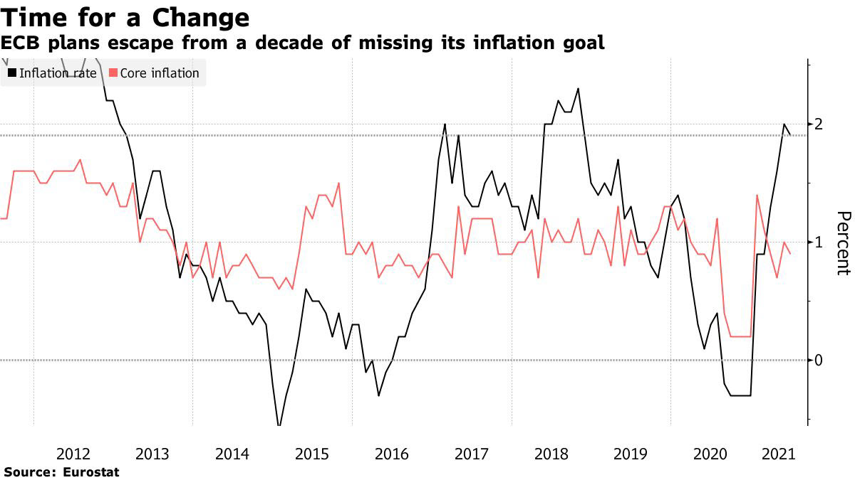 البنك المركزي الأوروبي رفع هدف التضخم الخاص به إلى 2٪ واعترف بأنه قد يتجاوز الهدف