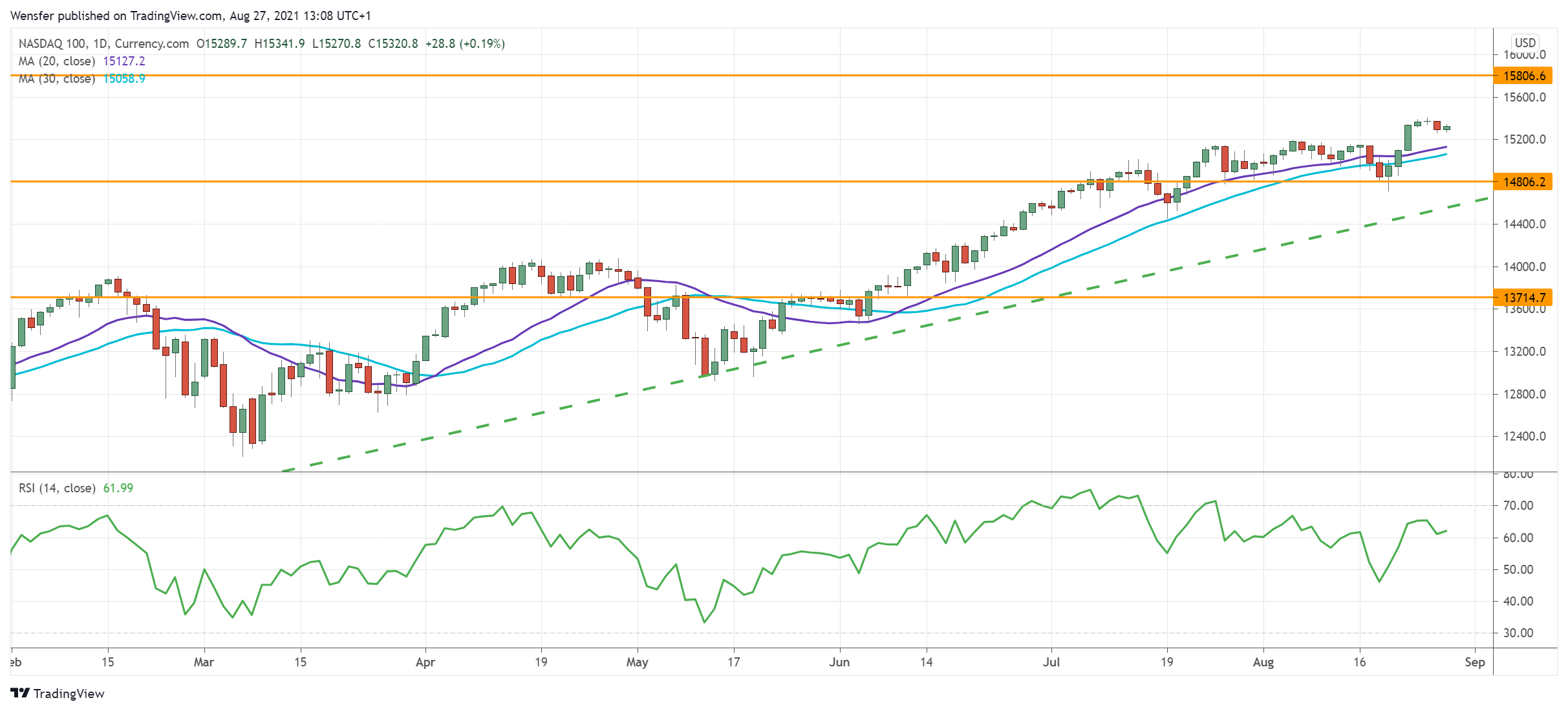 وسيكون المستوى ١٥٨٠٠ هو المحطة التالية، فيما يعمل المستوى ١٤٨٠٠ كدعم جديد.