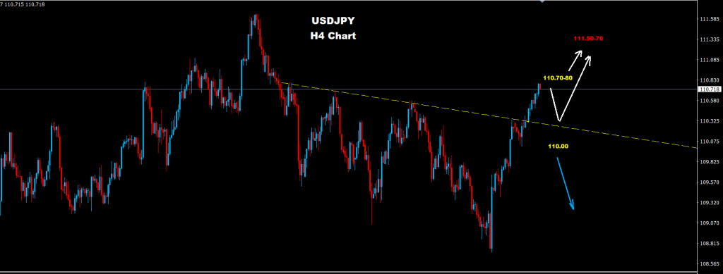 تمكن الدولار الأميركي مقابل الين الياباني من الاختراق فوق 110.30 حيث توقعنا سابقاً أنه وفوق هذا المستوى فإن المزيد من التقدم قد يضرب السوق فيما تتواجد مستويات مقاومة عند 110.80 و 111.70