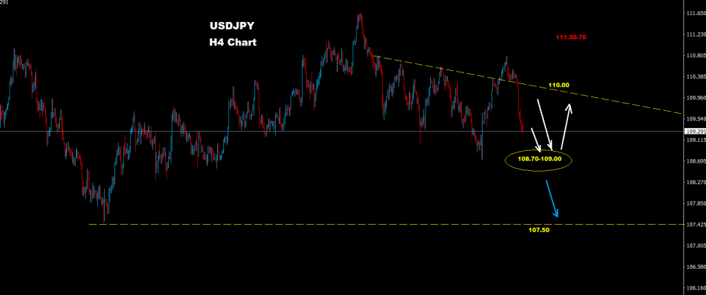 تحت 108.70 من المتوقع المزيد من الهبوط حيث يوجد دعم آخر حول 107.50