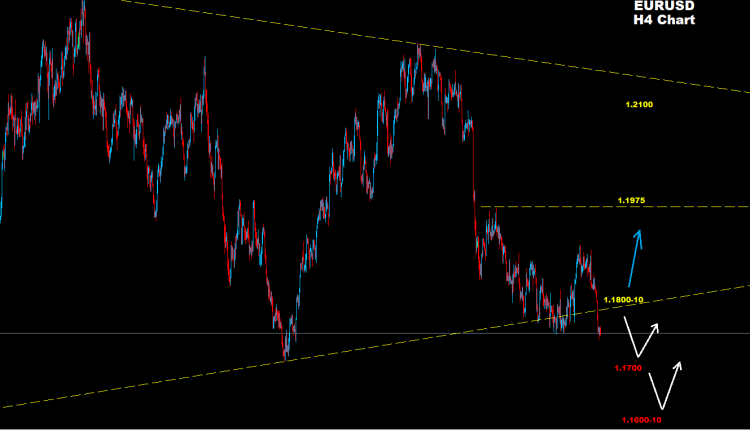 تمكن اليورو من التراجع إلى ما دون دعم 1.1760 حيث يقع السوق الآن تحت ضغط هبوط
