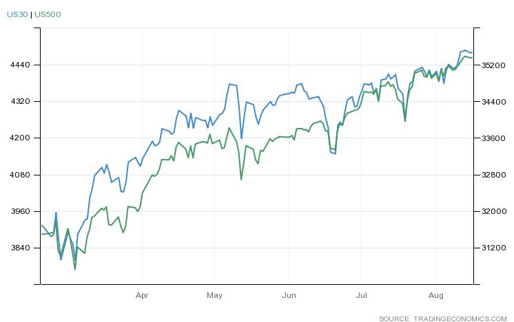 حيث رحب المستثمرون بنتائج الأرباح القوية وبيانات سوق العمل المتفائلة وموافقة مجلس الشيوخ على مشروع قانون ضخم للبنية التحتية.